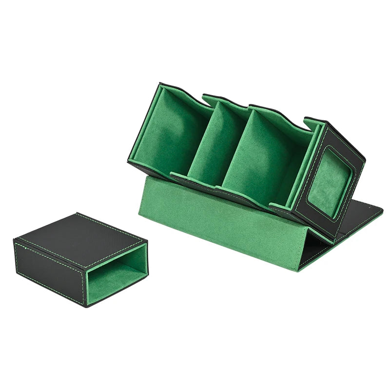 MTG Card Deck Box with two display window and dice box,Holds 200+ Double Sleeved Cards,PU Leather Card Box Fits for TCG CCG Card